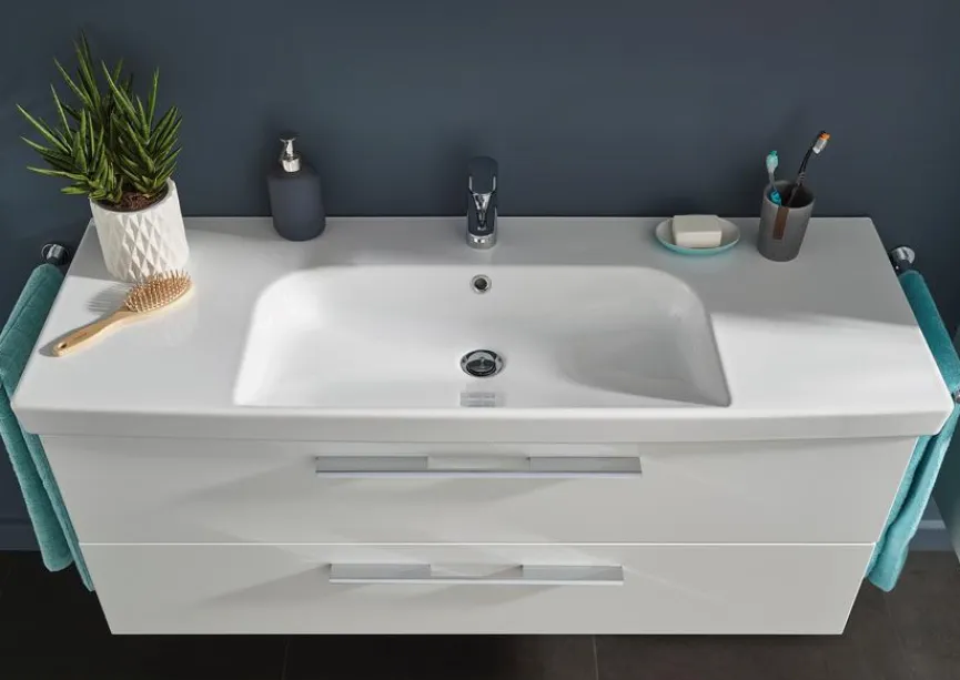 Waschtischunterschrank B/H/T ca. 120×48,5×39 cm, Waschtisch B/H/T ca. 125x6x45 cm