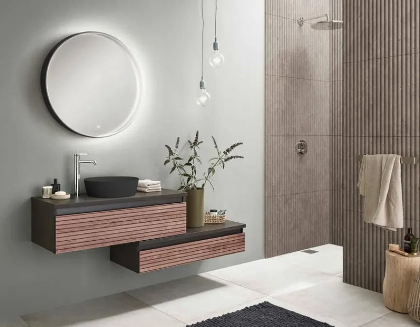 - 1 Unterschrank mit 1 Metallauszug mit Einzugsdämpfung, 1 Waschtischplatte in Cosmos Grey matt, 100,8 cm breit