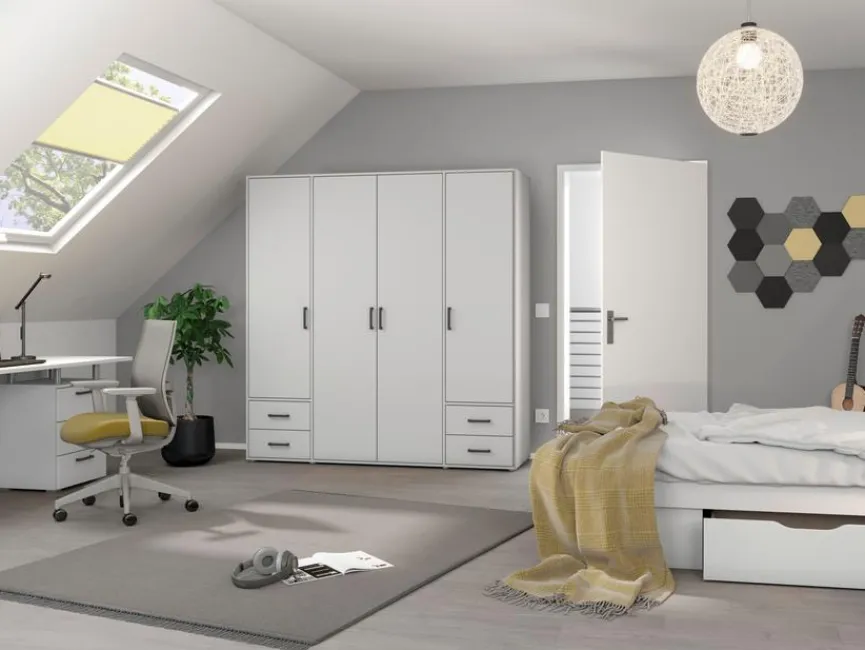 Verleihen Sie Ihrem Zuhause mit dem Drehtürenschrank 4-trg. Voyager 187×194 cm von rauch BLUE einen eleganten Touch. Der Schrank besticht mit seinem hochwertigen Design und einer durchdachten Aufteilung. Mit fünf Einlegeböden, einer Kleiderstange und vier Außenschubkästen bietet er ausreichend Platz für Ihre Kleidung und Accessoires. Erleben Sie mit dem Drehtürenschrank 4-trg. Voyager 187×194 cm eine perfekte Aufbewahrungslösung.
