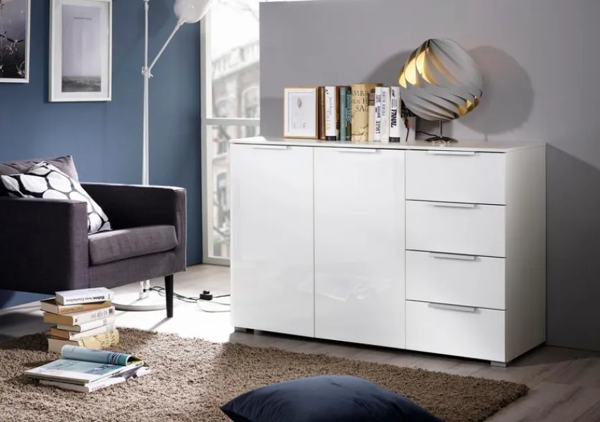 Mit der Kommode Aldono präsentiert Ihnen das Label Rauch Orange ein Aufbewahrungsmöbel im puristischen Design. Die gerade Linienführung sowie die zurückhaltende Farbgebung machen sie zum absoluten Kombitalent. So passt die Kommode Aldono von Rauch Orange sowohl ins zeitgemäß eingerichtete Wohnzimmer als auch ins Büro.