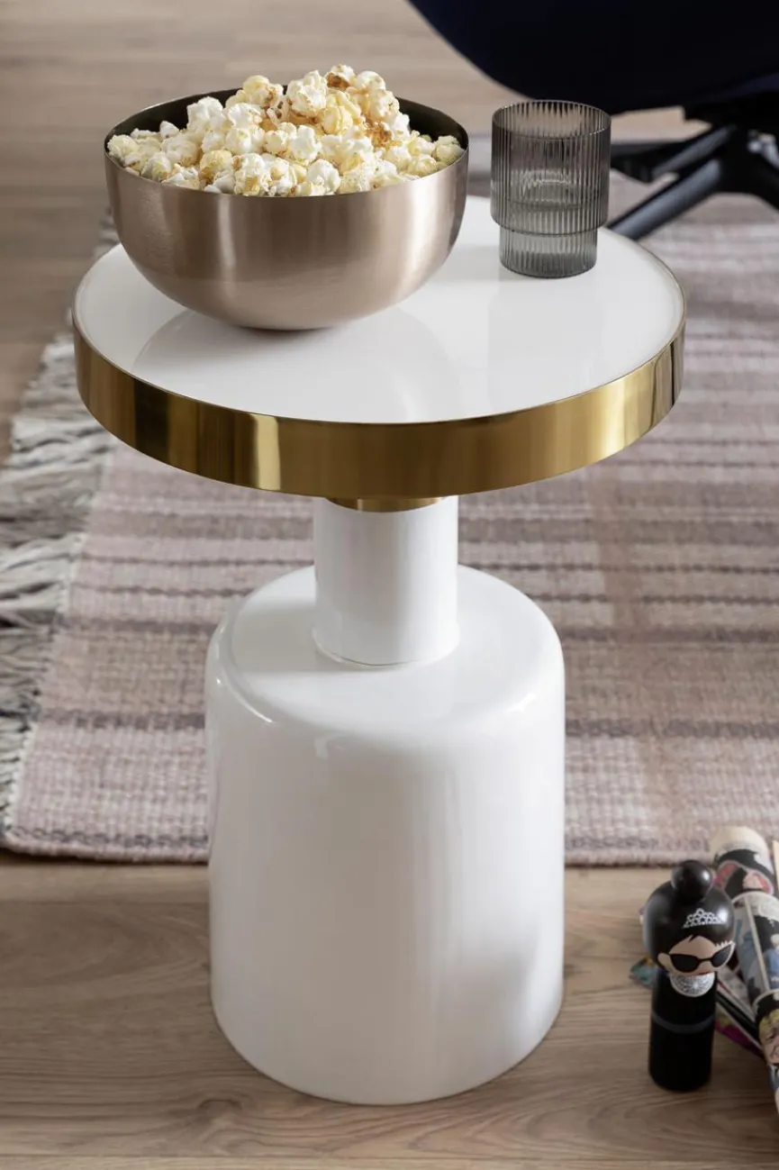 Wer ein trendiges Möbelstück im augenfälligen Design sucht, ist mit dem Beistelltisch Thea von RAUM.FREUNDE bestens beraten. Mit seinem runden Sockel und der edlen Leiste um die Tischplatte ist er ein Hingucker und eine coole Bereicherung im Wohnraum. Der Beistelltisch Thea lässt sich vielfältig verwenden, ob als Mittelpunkt der Sofalandschaft, als Ablage neben dem Sessel oder zum Abstellen von Getränken.