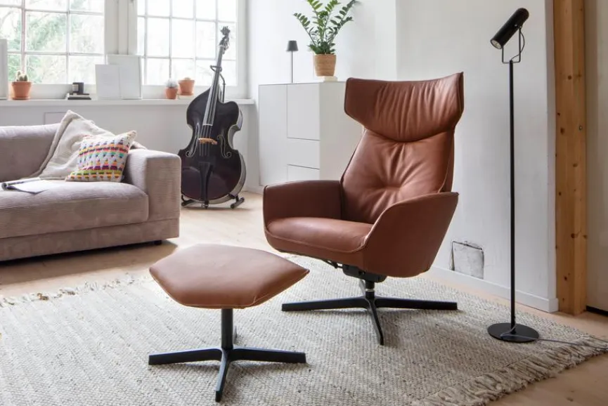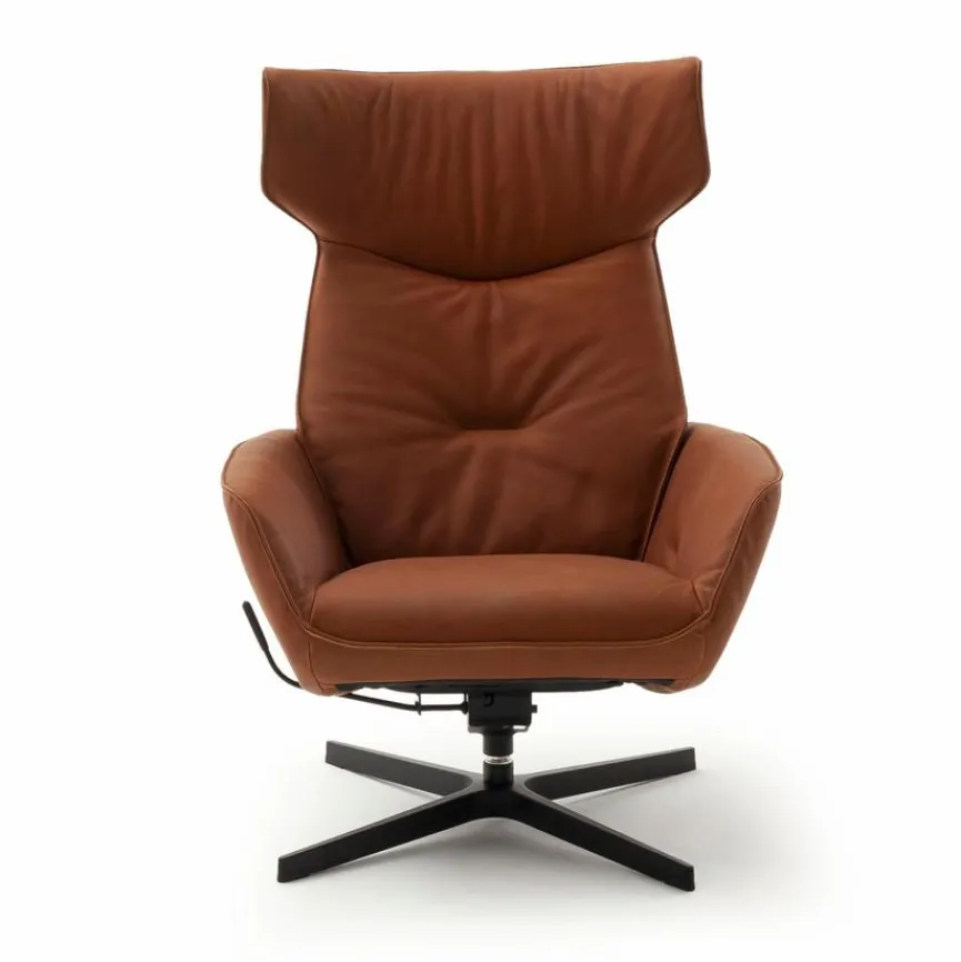 - Bezug aus Leder (Reno) in cognac, Kreuzfuß Metall schwarz