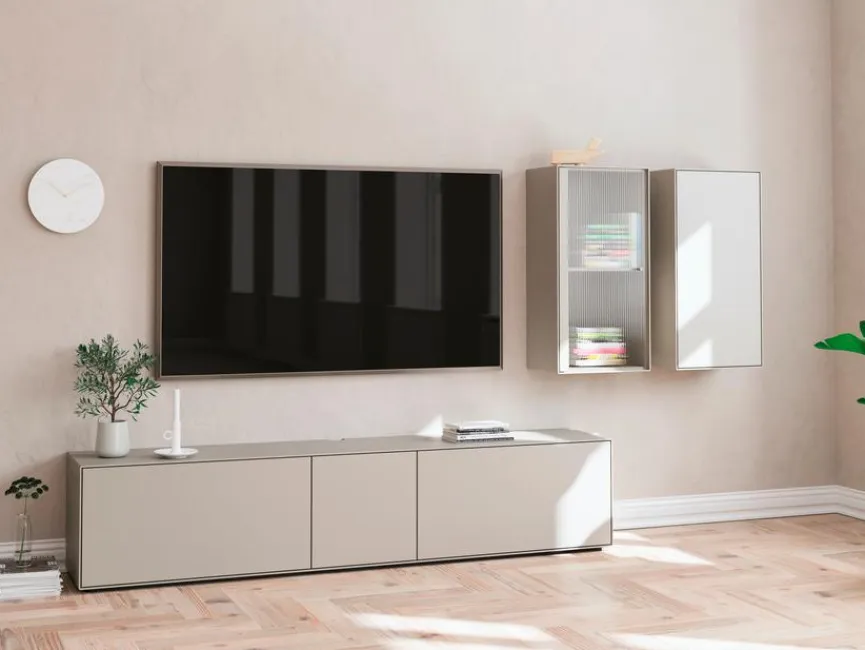 - Wohnwand aus TV-Lowboard und 2x Hängeregal