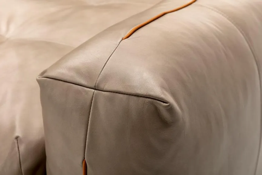 - Bezug aus Leder in steingrau (42.100) mit Kunstlederkeder in ockerbraun, Füße Kunststoffgleiter