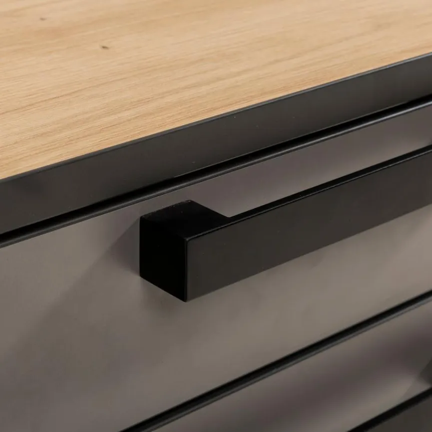 - Korpus aus Holzwerkstoff mit hochwertiger Dekorfolie in Eiche Artisan mit Kontrastkante in anthrazit