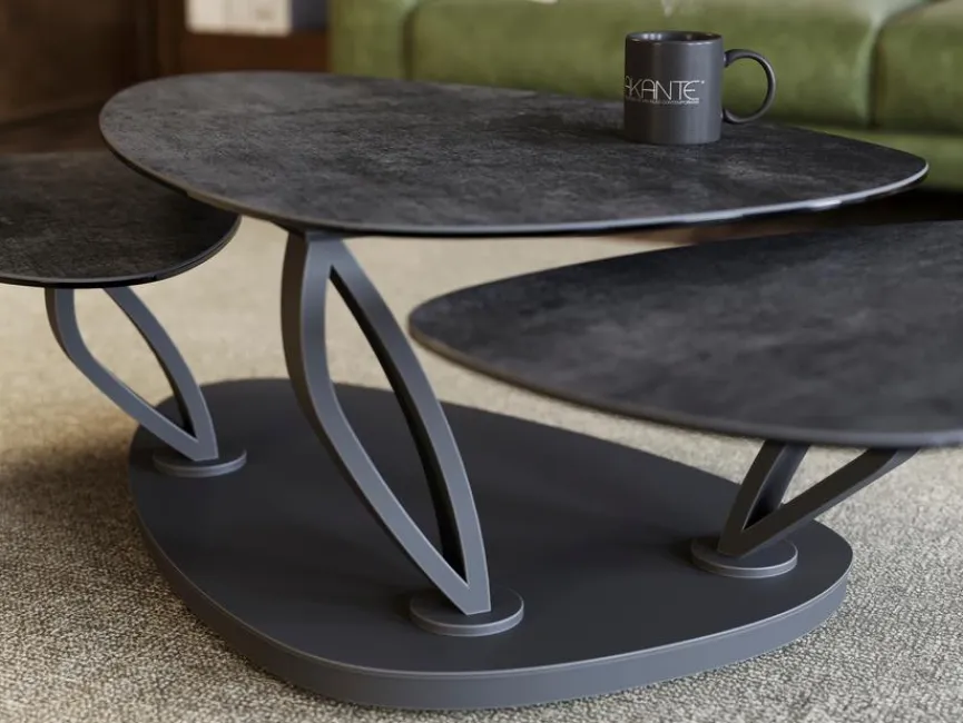 In Form und Design erinnert der Couchtisch Magnolias von Akante an die wohlbekannte und prachtvolle Pflanze. Die unterschiedlich großen Tischflächen steigen wie Blütenblätter aus dem Tischfuß empor. Platzieren Sie auf diesem außergewöhnlichen Wohnzimmertisch Getränke, Bücher oder Deko-Elemente. Der Couchtisch Magnolias bildet in großen wie kleinen Räumen ein zentrales Element Ihrer Einrichtung.