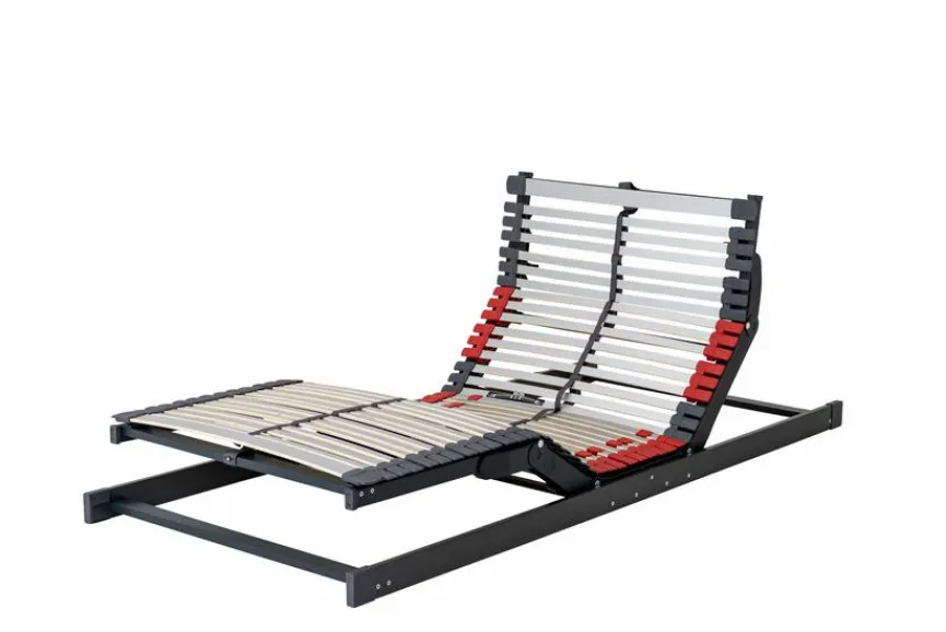 - Mit 44 flexibel gelagerten Mehrschicht-Federholzleisten zur vollflächigen Matratzenauflage