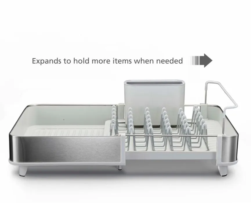 Das Abtropfgestell Extend von Joseph Joseph ist die ideale Lösung für kleine Küchen. Mit seinem platzsparenden Design und den kompakten Abmessungen passt es perfekt auf jede Arbeitsplatte. Die cleveren Auszieharme bieten zusätzliche Trockenfläche für Geschirr und das integrierte Auffangbecken hält die Arbeitsfläche trocken und sauber. Für unkomplizierte Hausarbeiten ist das Abtropfgestell Extend die richtige Wahl.