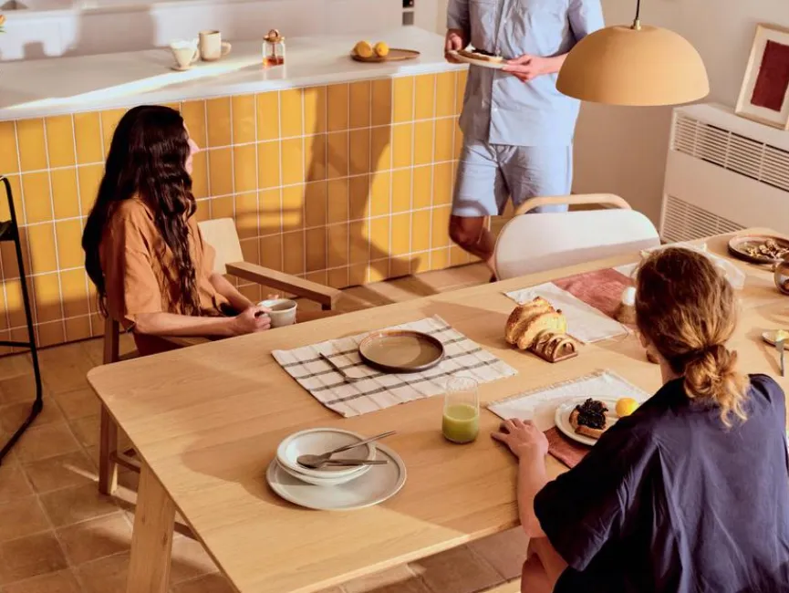 Der Esstisch Idun 220×100 cm von Kave Home begeistert mit einem Design, das vor freundlicher Exklusivität strotzt. Als Herzstück des Zuhauses lädt dieser Esszimmertisch zum hyggeligen Beisammensein mit der Familie oder mit Freunden ein. Für einen harmonischen Look passen zum Esstisch Idun 220×100 cm neben den Holzstühlen der Herstellerserie beispielsweise auch gepolsterte Sitzgelegenheiten mit Gestell aus massiver Eiche hervorragend.