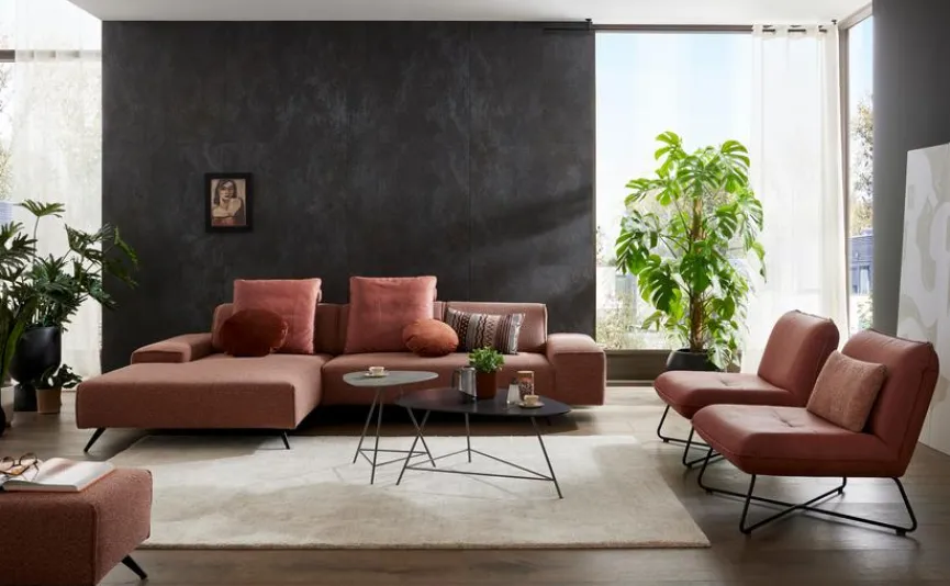 - Bezug aus Stoff in Blush (SK40), Füße aus Metall schwarz pulverbeschichtet (F1W)