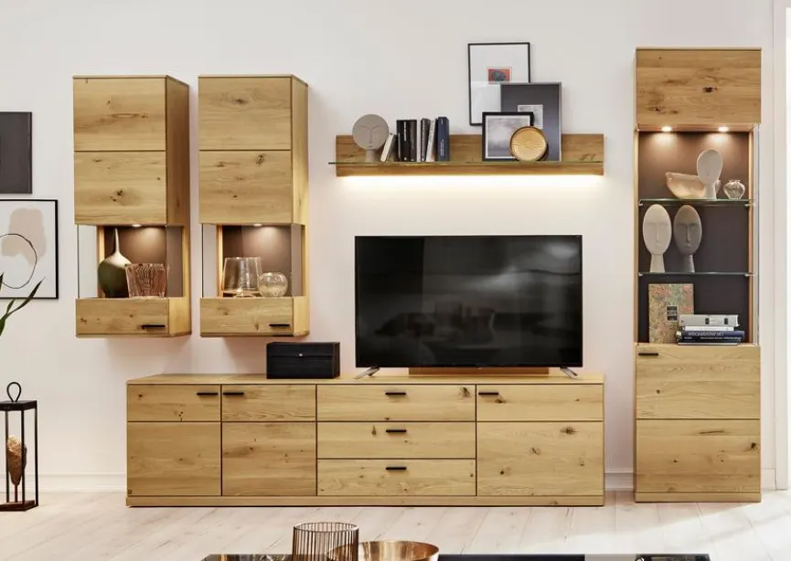 Die Wohnwand Kanto von Musterring überzeugt durch ihre klare Linienführung und großzügige Wirkung im Wohnbereich. Mit ihr schaffen Sie nicht nur Ordnung, sondern setzen einen modernen Gestaltungspunkt in Ihrem Zuhause. Dank ausreichend Stauraum und eleganter Optik wird die Wohnwand Kanto zum stilvollen Zentrum Ihrer Einrichtung.