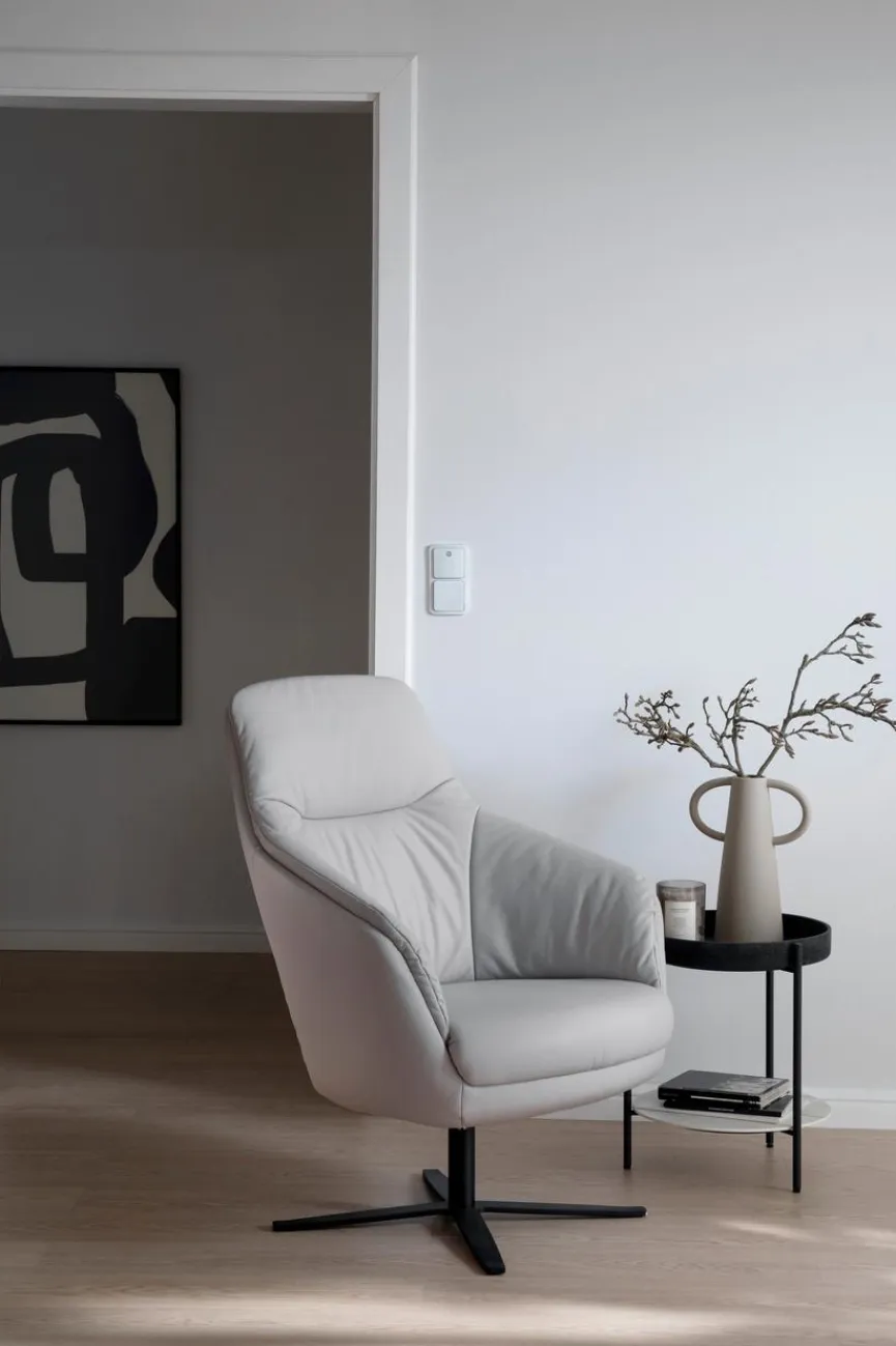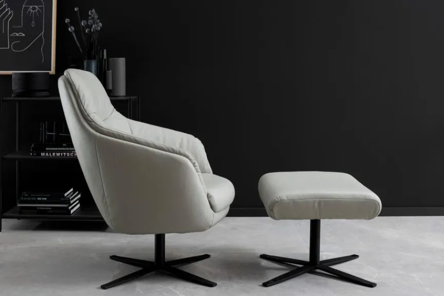 - Bezug aus Leder (Life Line) in light grey, Sternfuß schwarz matt (469)