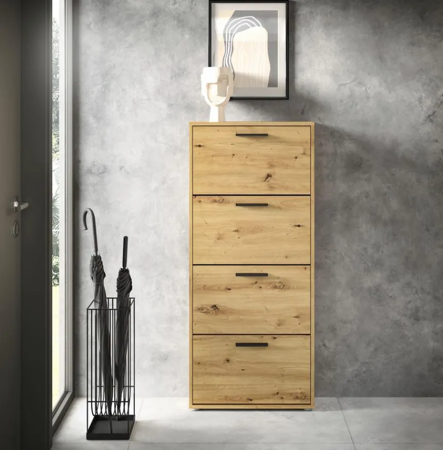 Mit dem Schuhkipper Sam sorgen Sie dafür, dass herumstehendes Schuhwerk, das einen unordentlichen Eindruck erwecken könnte, der Vergangenheit angehört. Die Ausführung dieses Möbelstückes ist rustikal gehalten und daher auch am besten mit Interieur in diesem Stil kombinierbar. Der Schuhkipper Sam vereint Funktionalität mit stilvollem Design und ist daher eine äußerst sinnvolle Anschaffung in Ihrer Garderobe.