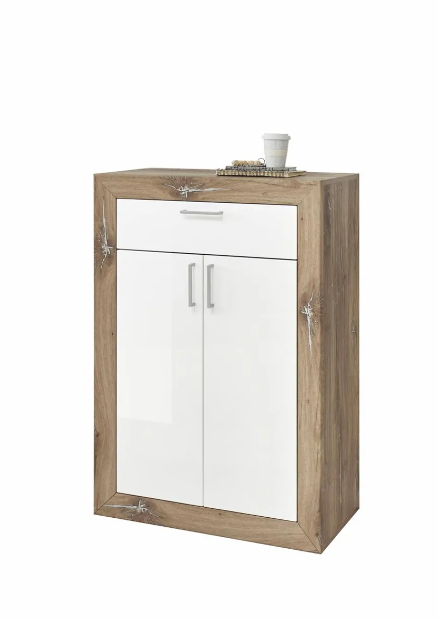 Bei der Schuhkommode Neapel treffen eine hohe Funktionalität und eine attraktive Optik zusammen. Mit dem Korpus im markanten Naturholzdekor und der unifarbenen Front ist der Schuhschrank sehr schön anzusehen. Im Inneren bietet die Schuhkommode Neapel praktischen Stauraum für die gut geordnete Aufbewahrung von Schuhen und anderen Gegenständen.