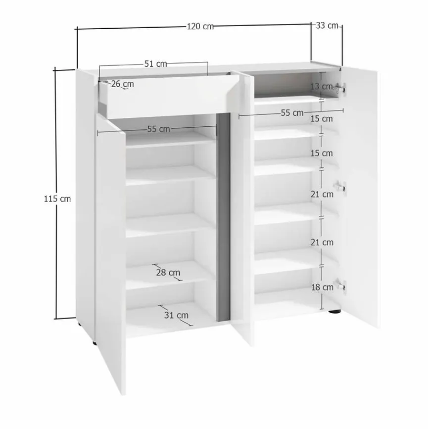 Mit dem praktischen Schuhschrank Atrium können Sie Ihre Accessoires stets gut sortiert aufbewahren. Das schicke Design sorgt für elegante Akzente in den Räumlichkeiten. Auf der Oberfläche ist beispielsweise Platz für dekorative Objekte. Zudem lässt sich der attraktive Schuhschrank Atrium hervorragend mit anderen Möbeln kombinieren.