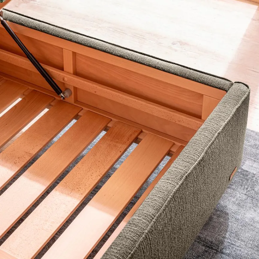 - Das Bettgestell und Kopfteil werden aus massiver Buche aus nachhaltiger Forstwirtschaft gefertigt