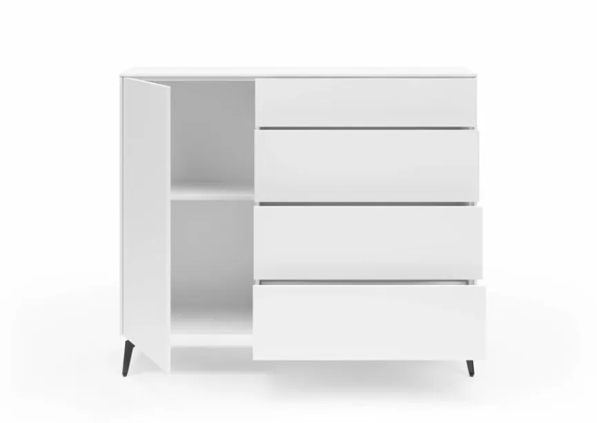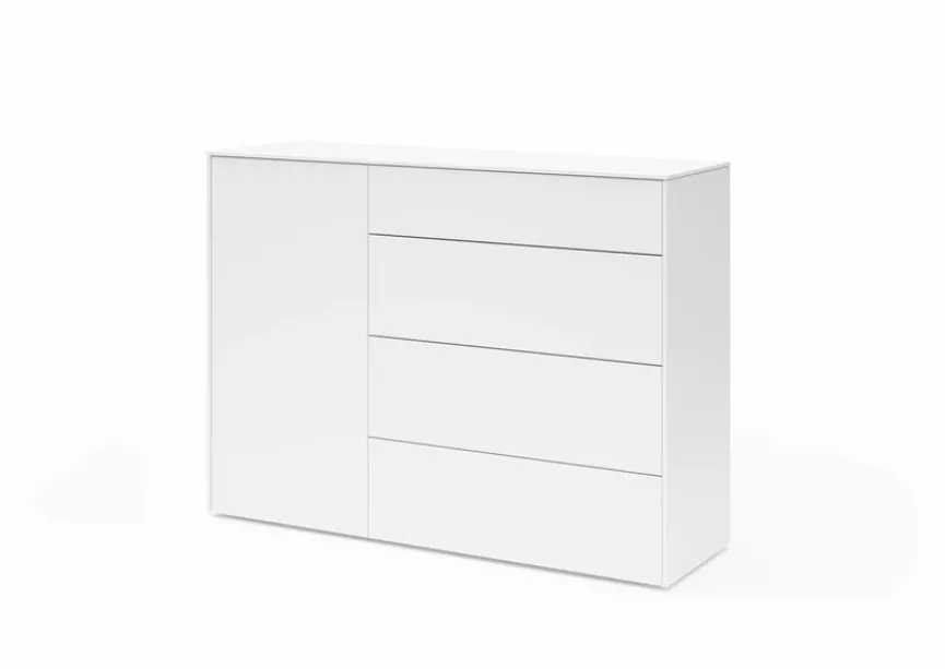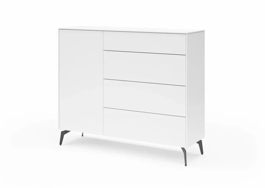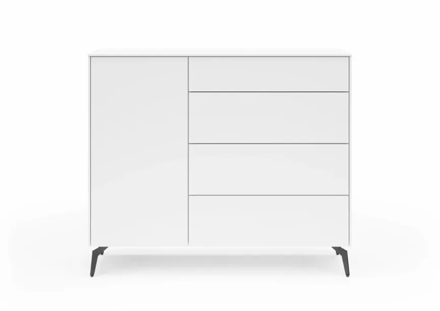 Durch ihr geradliniges und kompaktes Design wirkt die Kommode Riverside aus dem Hause set one by Musterring äußerst zeitgemäß. Die kratzfeste Melaminharzfolie des Möbelstücks sorgt außerdem für eine unempfindliche Oberfläche. Natürlich trägt die Kommode Riverside dank des großen Stauraums ebenfalls zur Ordnung bei.