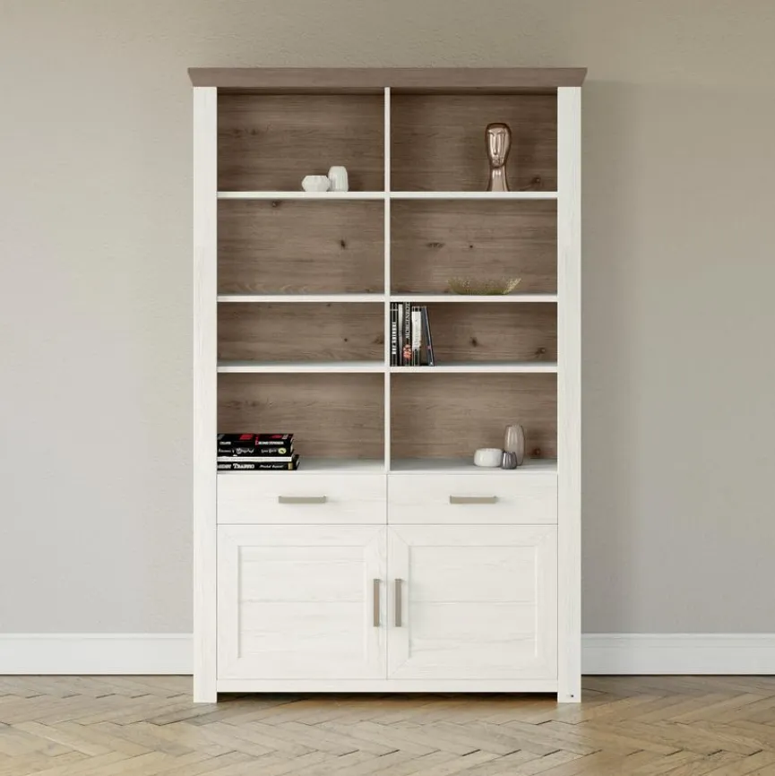 Das Regal York von set one by Musterring überzeugt mit einem hellen und trendigen Design, das Komfort und Moderne vereint. Das Wandregal bietet mit seinen 2 Türen Platz für Ihre Accessoires, während 2 Schubladen und 8 offene Fächer für reichlich Stauraum sorgen. Mit seinem hochwertigen und zeitgemäßen Erscheinungsbild ergänzt das Regal York perfekt Ihre Einrichtung.