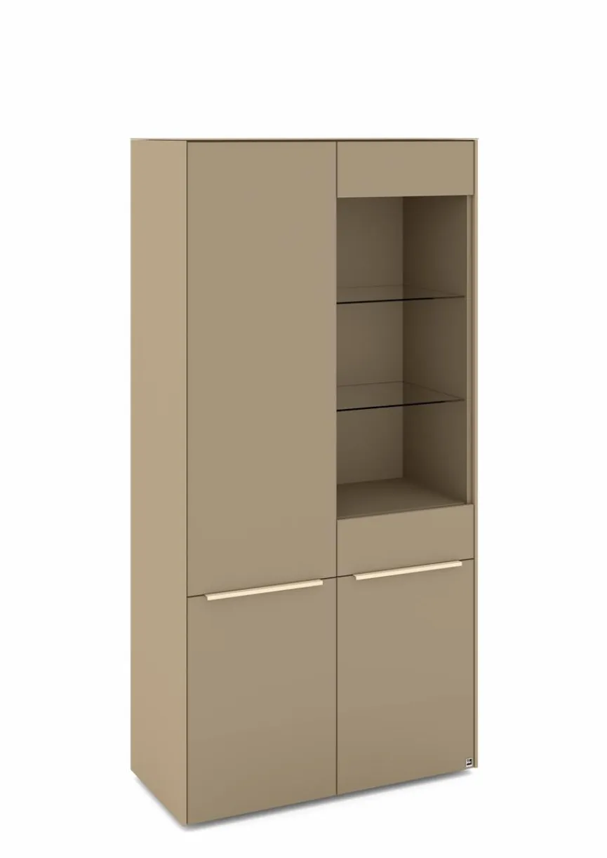 - Mit 1 Tür mit Glasausschnitt und 1 Tür, Griffe aus Metall mit Lack in kaschmir
