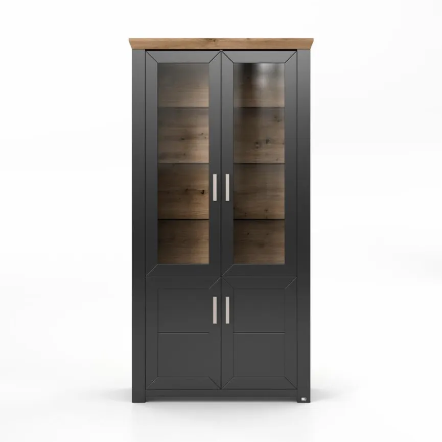 Die set one by Musterring Vitrine York ist im modernen Country-Stil gestaltet. Für den klassischen Touch, den diese mit zwei Türen versehene Glasvitrine mit sich bringt, sorgt ein markantes Kranzprofil. Kombinieren Sie die Vitrine York am besten mit den anderen Möbeltypen aus diesem herrlich gemütlich wirkenden Programm!
