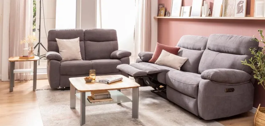 - Inkl. jeweils 2 motorische Relaxfunktionen im 3er Sofa und 2er Sofa