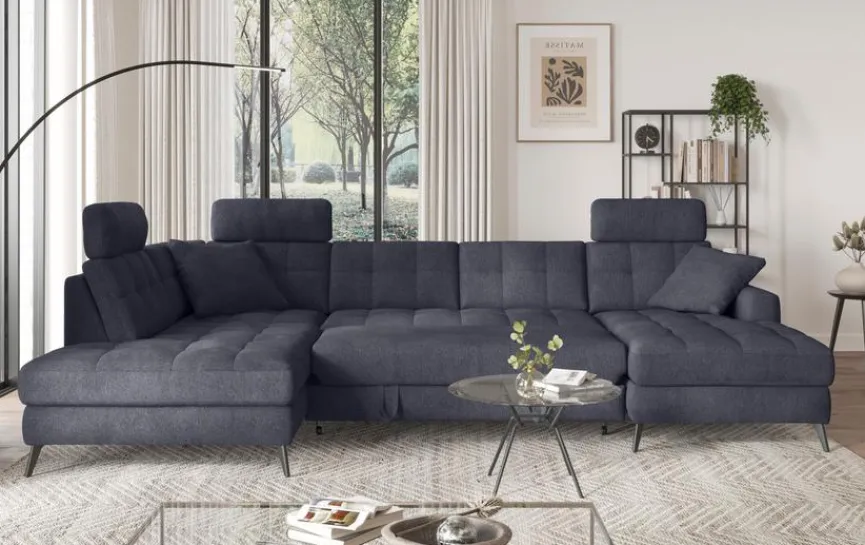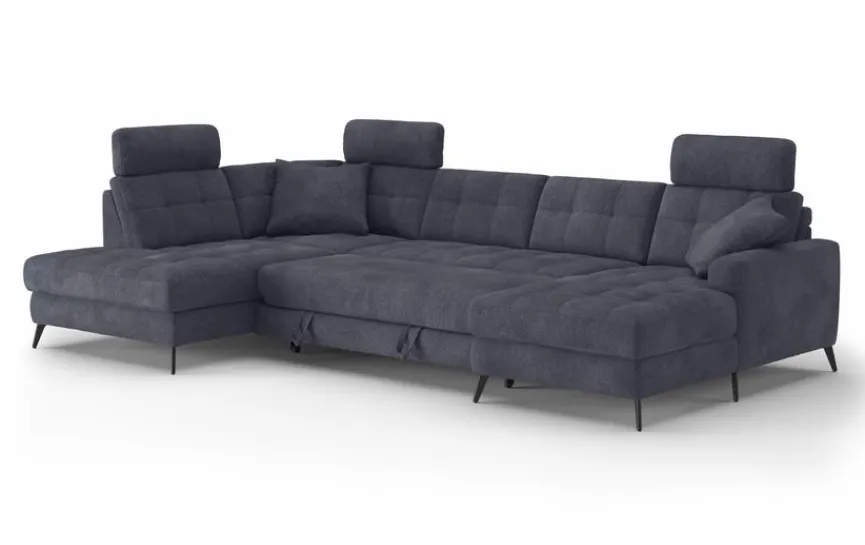 - Inkl. Schlaffunktion durch Frontauszug im 2-Sitzer, Bettkasten im Longchair, Stauraum in der Ottomane, 1 Relaxrücken im Longchair und der Ottomane, 1 Sitztiefenverstellung im äußeren SItz der Ottomane