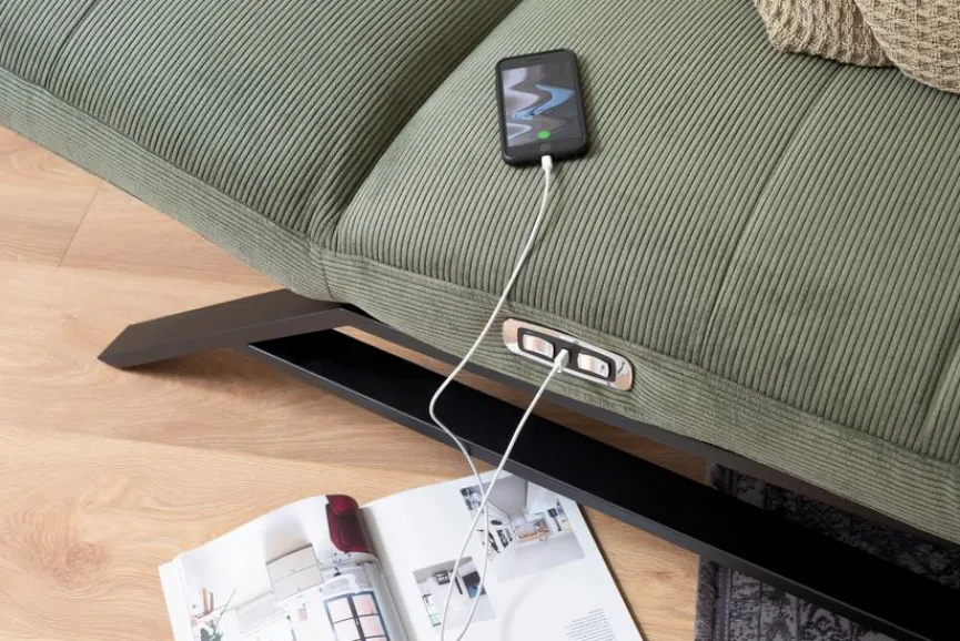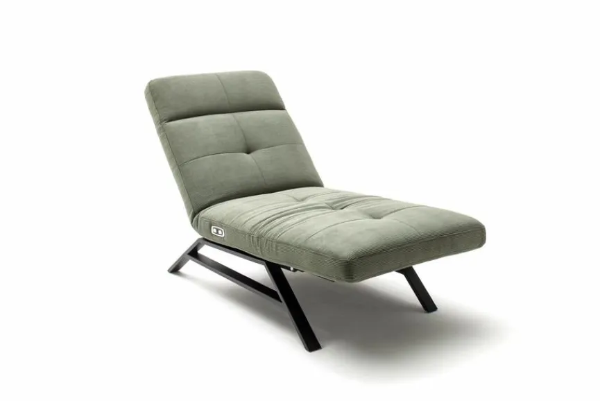 - Bezug aus Stoff (Feincord) in oliv, Metallkufe schwarz matt (368)
