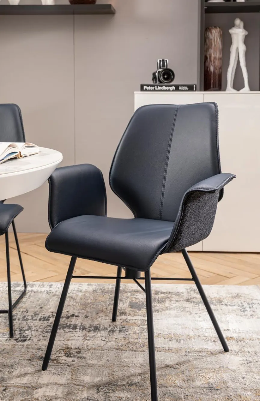 - Bezug innen aus Leder Tendens in Lavendel und außen aus Stoff Indy in navy