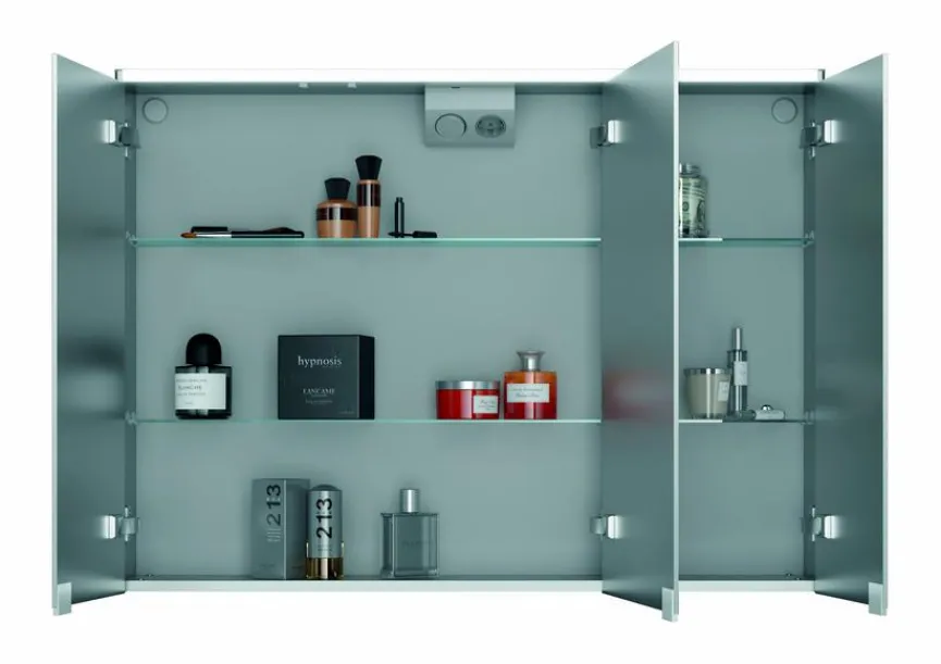 Spieglein, Spieglein an der Wand, der Spiegelschrank Dekor Alu III kann allerhand. Hinter drei Türen aus Kristallglas ist auf verstellbaren Glasablagen genügend Platz für wichtige Badutensilien. In Sachen Design nimmt sich der puristisch gehaltene Wandschrank vornehm zurück. So überlässt er kuschligen Handtüchern und stilvollen Badaccessoires gekonnt den großen Auftritt. Keine Abstriche gibt es hingegen in der Qualität – der Spiegelschrank Dekor Alu III überzeugt mit langlebigen und pflegeleichten Oberflächen.
