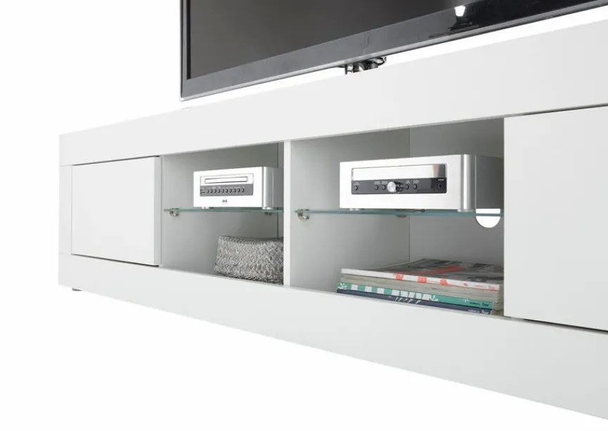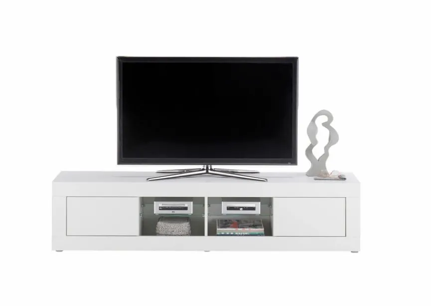 Wer sich gern chic und modern einrichtet, sollte sich das TV-Lowboard Oakland auf jeden Fall ansehen. Der moderne TV-Unterschrank der Marke Stolkom passt aufgrund der glatten Fronten und Glas-Elemente perfekt zu modern-puristischem sowie nordischem Interieur. Dank des großzügigen Stauraums bietet das TV-Lowboard Oakland viel Platz, zum Beispiel für Zeitschriften und das Zubehör für die Unterhaltungselektronik.