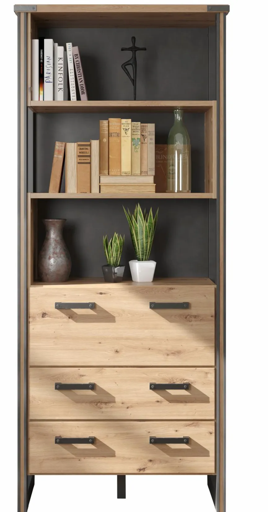- Mit 3 offenen Fächern, 1 Klappe und 2 Schubkästen