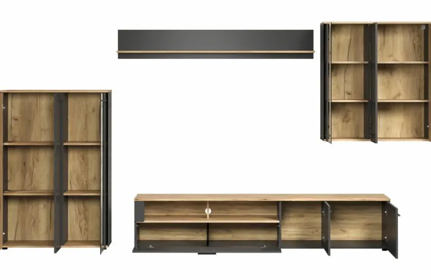 - Wohnwand bestehend aus Highboard, TV-Lowboard, Wandboard und Hängevitrine