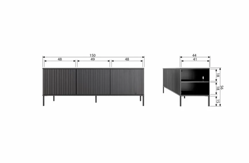 Viel Stauraum und eine großzügige Abstellfläche für Ihren Fernseher, die Audioanlage und mehr bietet Ihnen das moderne TV-Lowboard New Gravure, dessen vertikal strukturierte Front gelungene optische Akzente setzt. Der hochwertige TV-Unterschrank ist mit drei herausnehmbaren, höhenverstellbaren Einlegeböden ausgestattet. Außerdem wartet das TV-Lowboard New Gravure mit einem praktischen Push-to-Open-System auf, das ein geräuschloses Schließen der drei Türen ermöglicht.