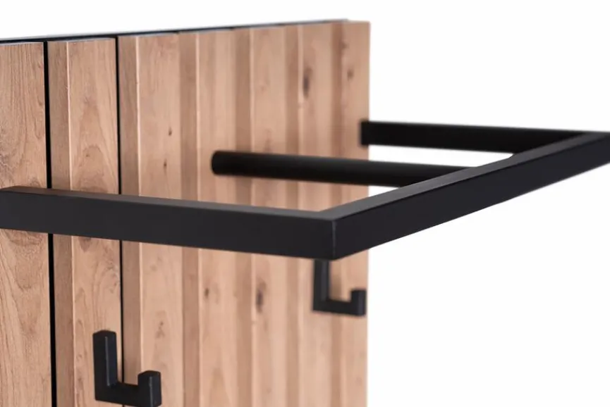 Die Wandgarderobe Tip eignet sich hervorragend dafür, Ihren Flur oder den Eingangsbereich, um ein praktisches Element zu erweitern. Sie überzeugt durch ihr modernes Design und bietet zugleich viel Platz für diverse Kleidungsstücke. Zu diesem Zweck hält die Wandgarderobe Tip vier Garderobenhaken und eine Kleiderstange bereit.