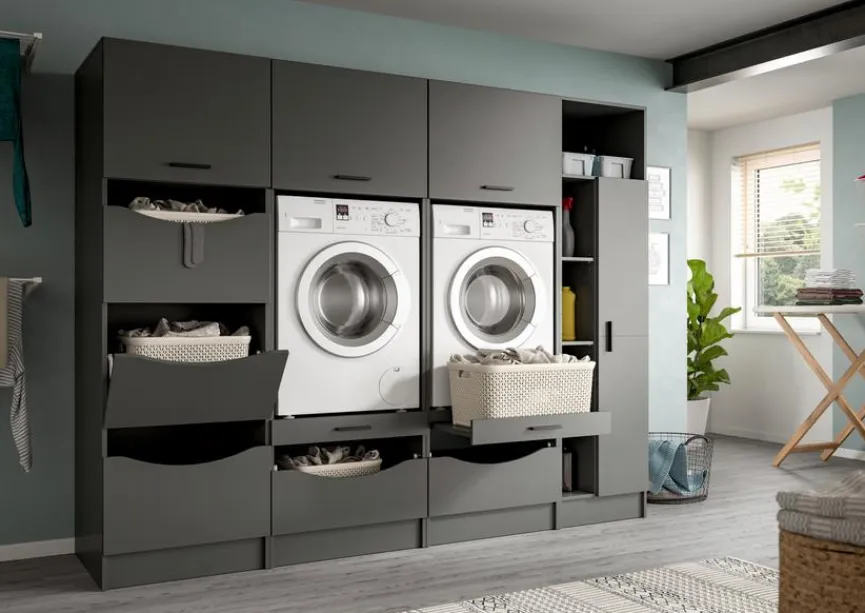 Mit dem Waschmaschinenschrank-Set Lucca gehören frei herumliegende Handtücher, Kosmetikartikel oder diverse Gerätschaften der Vergangenheit an. Das Design dieses Geräteschrankes ist eher modern gehalten und lässt sich auch am besten mit Interieur in diesem Stil kombinieren. Der Waschmaschinenschrank-Set Lucca sorgt dafür, dass alles, was man in einem Badezimmer so braucht, seinen Platz hat und man mit einem Griff findet, was man sucht.