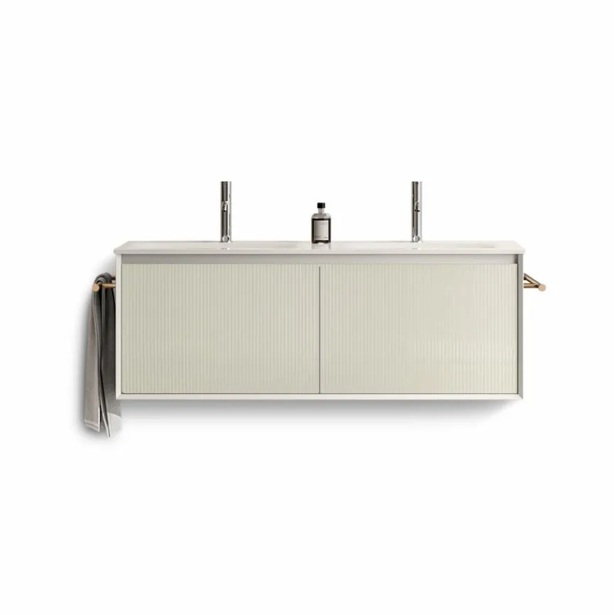 - Mit Doppelwaschtisch Mineral Geacril in MGC-O233 Seta, ohne Überlauf, mit Permanentablauf, (nur mit nicht verschließbaren Ablaufventilen kombinierbar)