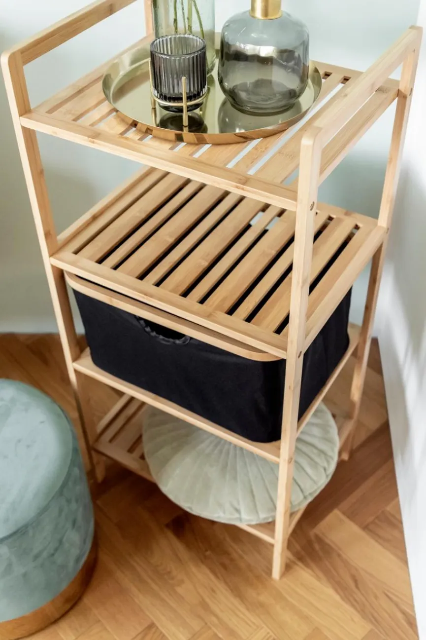 Das hochwertige Badregal Ecori 44×93,5 cm der Marke WENKO präsentiert sich mit drei Ablagen und einem Korb. Neben seiner Funktionalität überzeugt das Badezimmerregal durch Stil und Nachhaltigkeit. Mit dem Badregal Ecori 44×93,5 cm bekommen Sie jede Menge Platz für beispielsweise Bücher, Zeitschriften und Deko-Elemente.