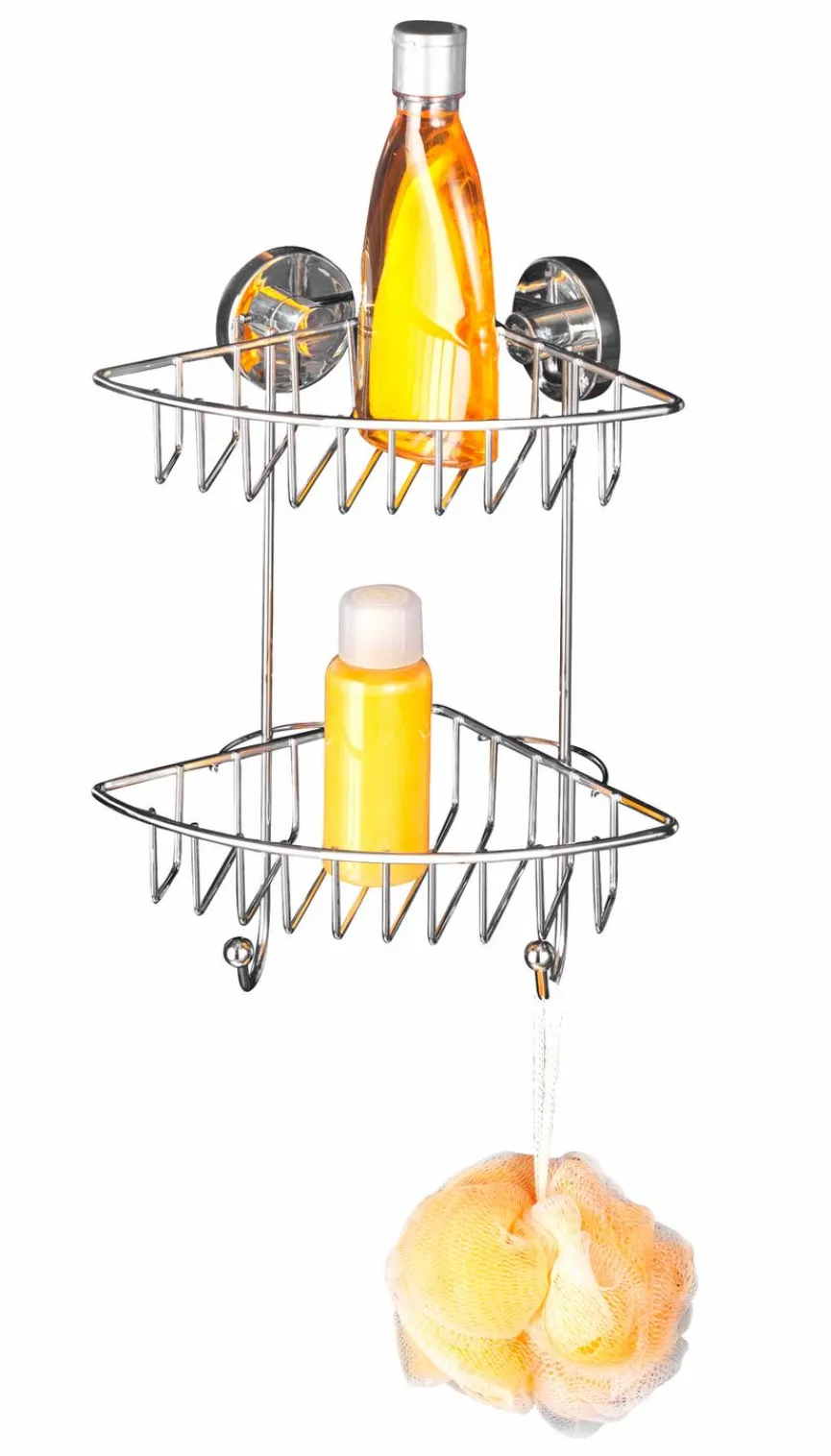 Das Duschregal Bari aus dem Hause WENKO bietet starken Halt und überzeugende Qualität auf zwei Etagen. Verteilt auf zwei Körbe, können Pflege-Artikel und Bad-Accessoires platzsparend untergebracht werden. Die beiden Haken sorgen für zusätzliche Aufhängemöglichkeiten. Das Duschregal Bari der Marke WENKO hilft Ihnen setzt Waschlappen und Handtücher dekorativ und übersichtlich griffbereit zu haben.