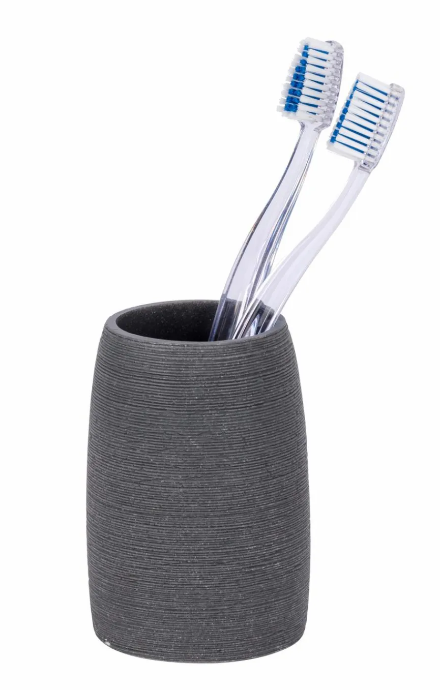 Grob eingearbeitete Rillen verleihen dem Zahnputzbecher Goa des Labels WENKO neben dem interessanten Aussehen eine hohe Griffigkeit. Er lässt sich mit weiteren Artikeln aus dieser Serie kombinieren. Der elegante Zahnputzbecher Goa von WENKO stellt einen standfesten Behälter für die Zahnbürste dar und ist der ideale Partner für die Mundhygiene.