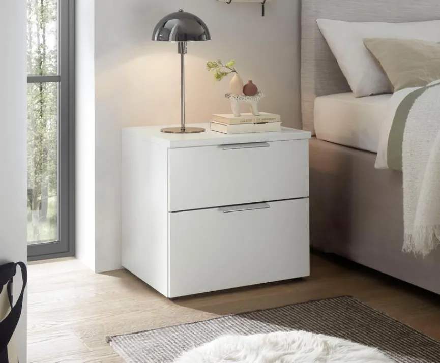 Mit seinen beiden separaten Schubladen bietet Ihnen der Nachttisch Como von Wiemann die Möglichkeit, Magazine, Hygieneartikel oder Wäsche sinnvoll sortiert unterzubringen. Auf der Oberfläche dieser Nachtkonsole ist zudem reichlich Platz für eine Lampe, den Wecker sowie Dekoartikel. Dank seiner klar strukturierten Formensprache ist der Nachttisch Como eine ästhetische Bereicherung für das heimische Schlafzimmer.