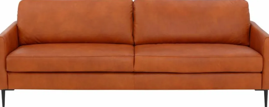 - Bezug aus Leder (Z69) in cognac (50), Füße aus Metall (FV8) in schwarz (M99)