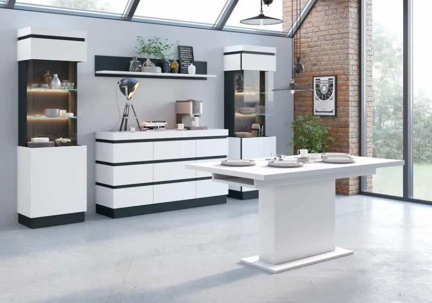 Die Vitrine Campania von Wójcik ist ein elegantes Möbelstück, das Ihre Lieblingsstücke stilvoll präsentiert. Mit ihrem ansprechenden Design wird sie zum Blickfang in jedem Raum. Die Glasvitrine eignet sich perfekt, um Ihre wertvollen Sammlerstücke, Geschirr oder andere Schätze gekonnt in Szene zu setzen. Verleihen Sie Ihrem Wohnraum mit diesem Möbelstück besondere Akzente und genießen Sie die bewundernden Blicke Ihrer Gäste auf die Vitrine Campania.