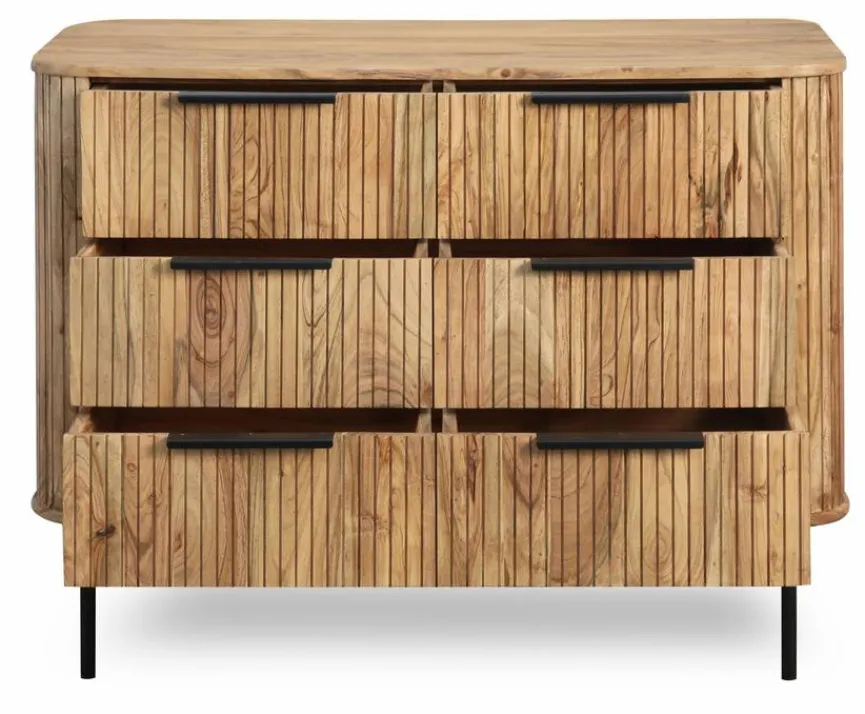 Das Sideboard Bronx 4484 aus dem Hause WOLFMÖBEL wirkt gemütlich und extravagant. Abgerundete Kanten verleihen der praktischen Kommode aus Holz ein außergewöhnliches Erscheinungsbild. Aber auch die markant geriffelten Oberflächen, die einen reizvollen Tiefeneffekt mit sich bringen, machen das Sideboard Bronx 4484 zum Eyecatcher im Raum.