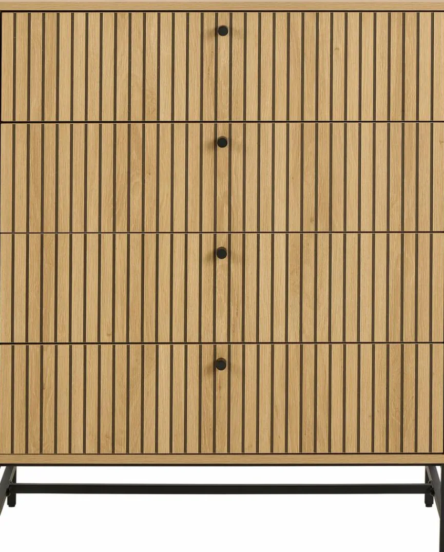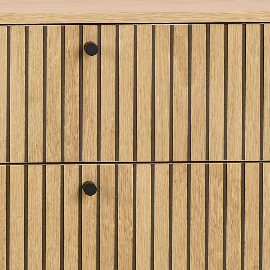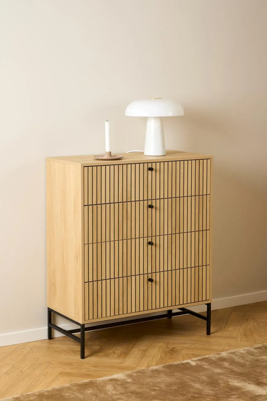 Diese charmante Kommode Albany von Actona bietet viel Platz zum Verstauen zahlreicher Dinge, die ordentlich und griffbereit untergebracht werden sollen. Da sie mit ihrer stilvollen Lamellenfront ebenso gut ins Wohnzimmer wie auch in den Flur oder Schlafraum passt, bietet die Kommode Albany Platz für Spiele, Heimtextilien oder auch zusammengefaltete Kleidung. Optisch besticht sie besonders durch kontrastierende Details, kombiniert mit einer warm gemaserten Oberfläche in Holzoptik.