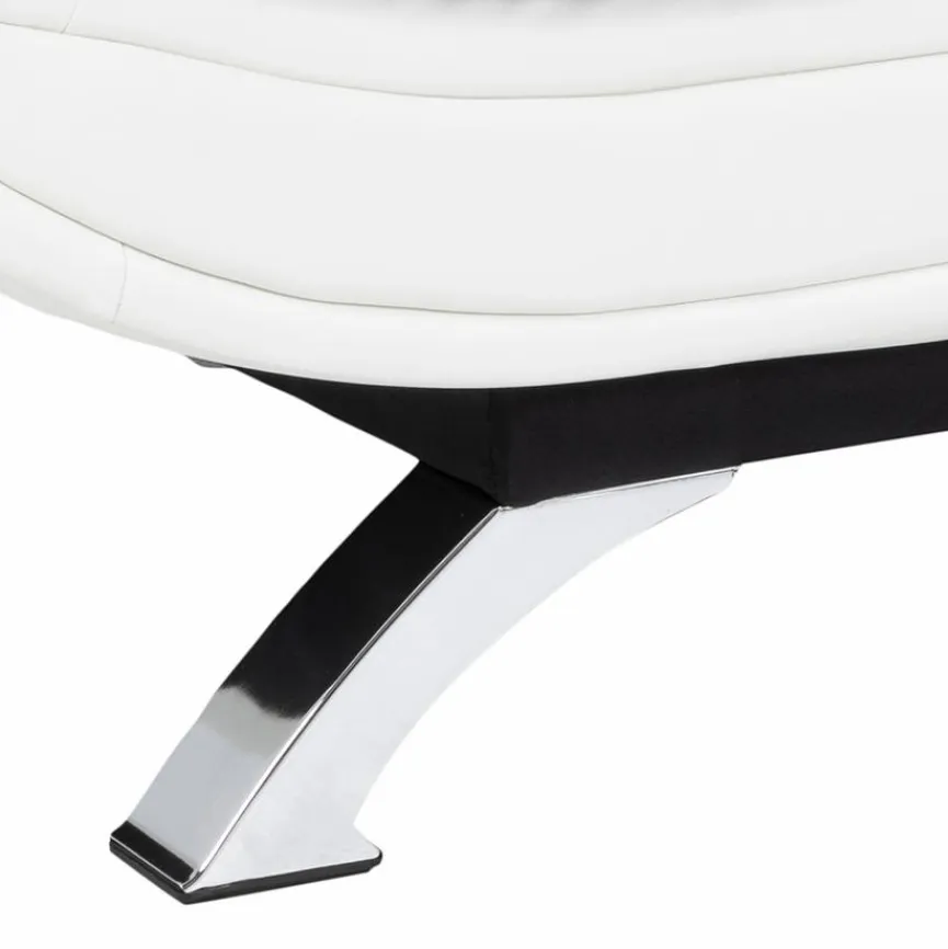 - Sitzbezug aus Stoff in grau, Korpusbezug aus Lederoptik weiß, Füße Metall verchromt