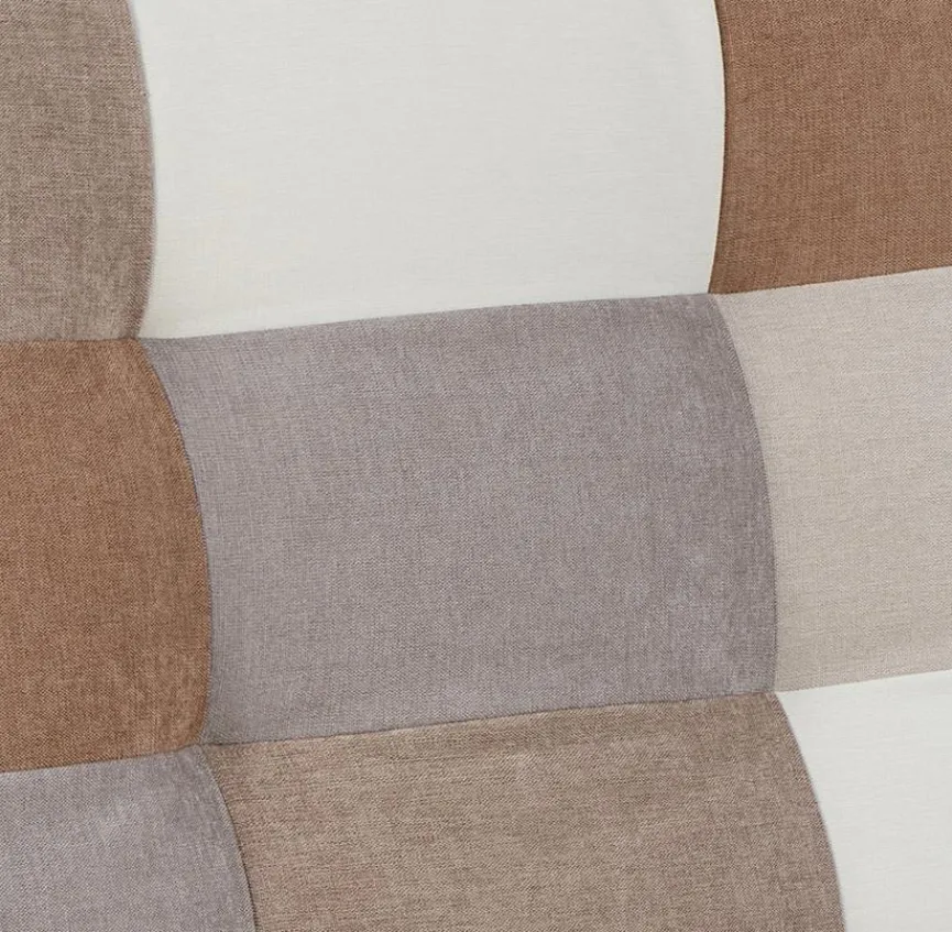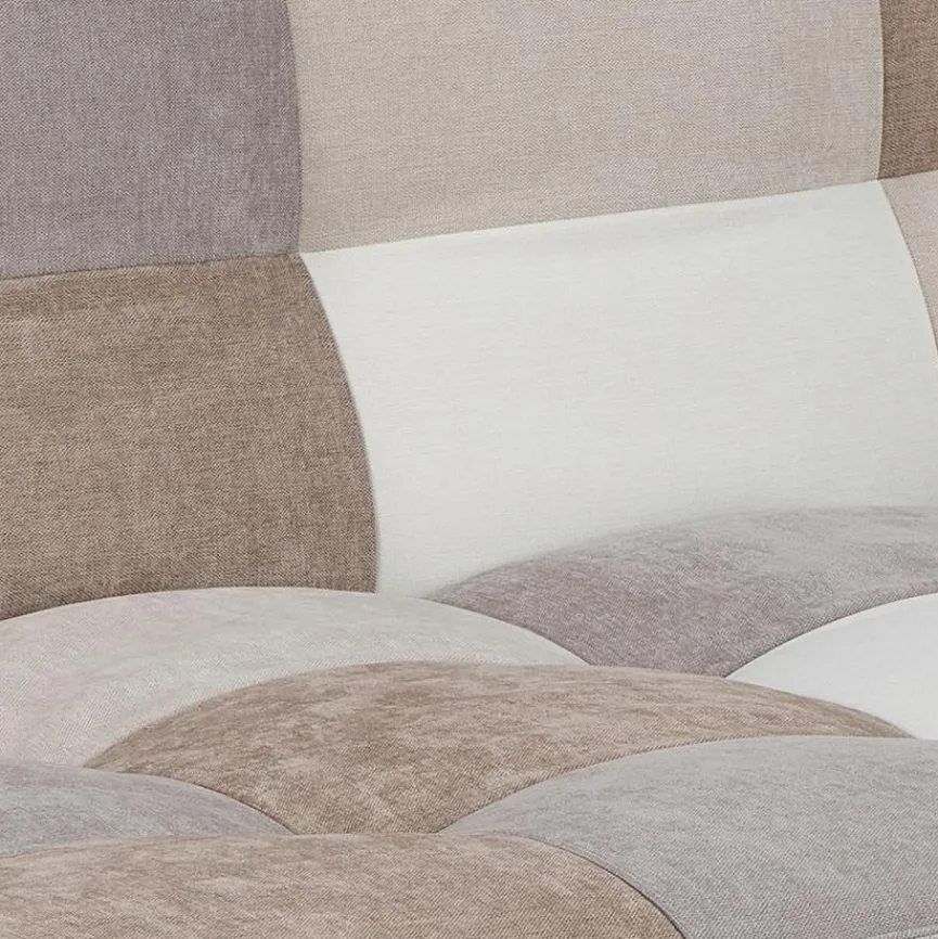 - Bezug aus Stoff (Patchwork) in beige/braun, Füße Metall schwarz