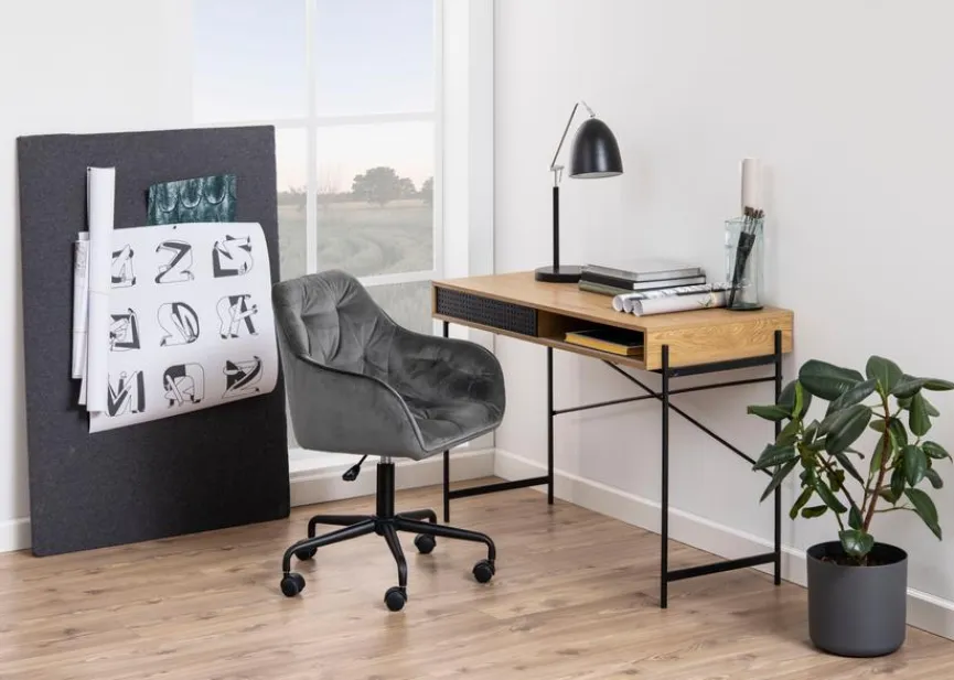 Der Schreibtisch Angus aus dem Hause Actona setzt einen trendigen Akzent in Ihrem Interieur. Mit seinem gelungenem Zusammenspiel aus Holz und Metall sowie den geradlinigen Formen erhält das Möbel ein attraktives Äußeres. Unter der Tischplatte bietet der Schreibtisch Angus praktischen Stauraum für Unterlagen, Schreibutensilien und andere Gegenstände.