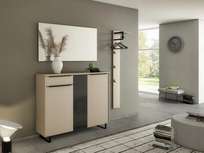 - Bestehend aus: Schuhschrank, Paneel und Spiegel
