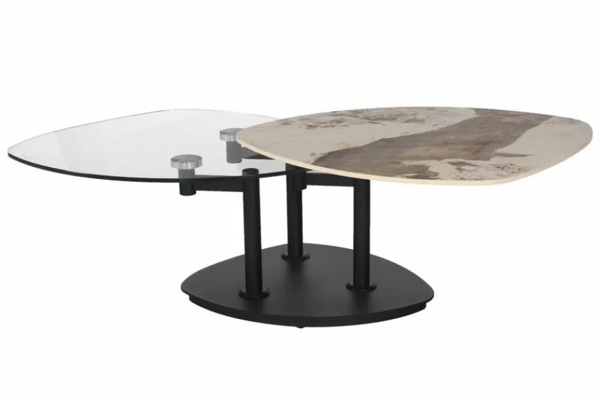 Mit dem Couchtisch Cres bietet Arteca einen vielseitig verwendbaren Wohnzimmertisch im außergewöhnlichen Design. Seine beiden dreischenkligen Tischplatten sind flexibel und individuell arrangierbar. Nicht nur für Snacks und Getränke eignen sich die aus verschiedenen Materialien gefertigten Abstellplätze. Auch Blumenvasen und Topfpflanzen lassen sich auf den multiplen Plattformen präsentieren. Auf unterschiedlichem Höhenniveau setzt der Couchtisch Cres auch Dekoartikel wirkungsvoll in Szene.