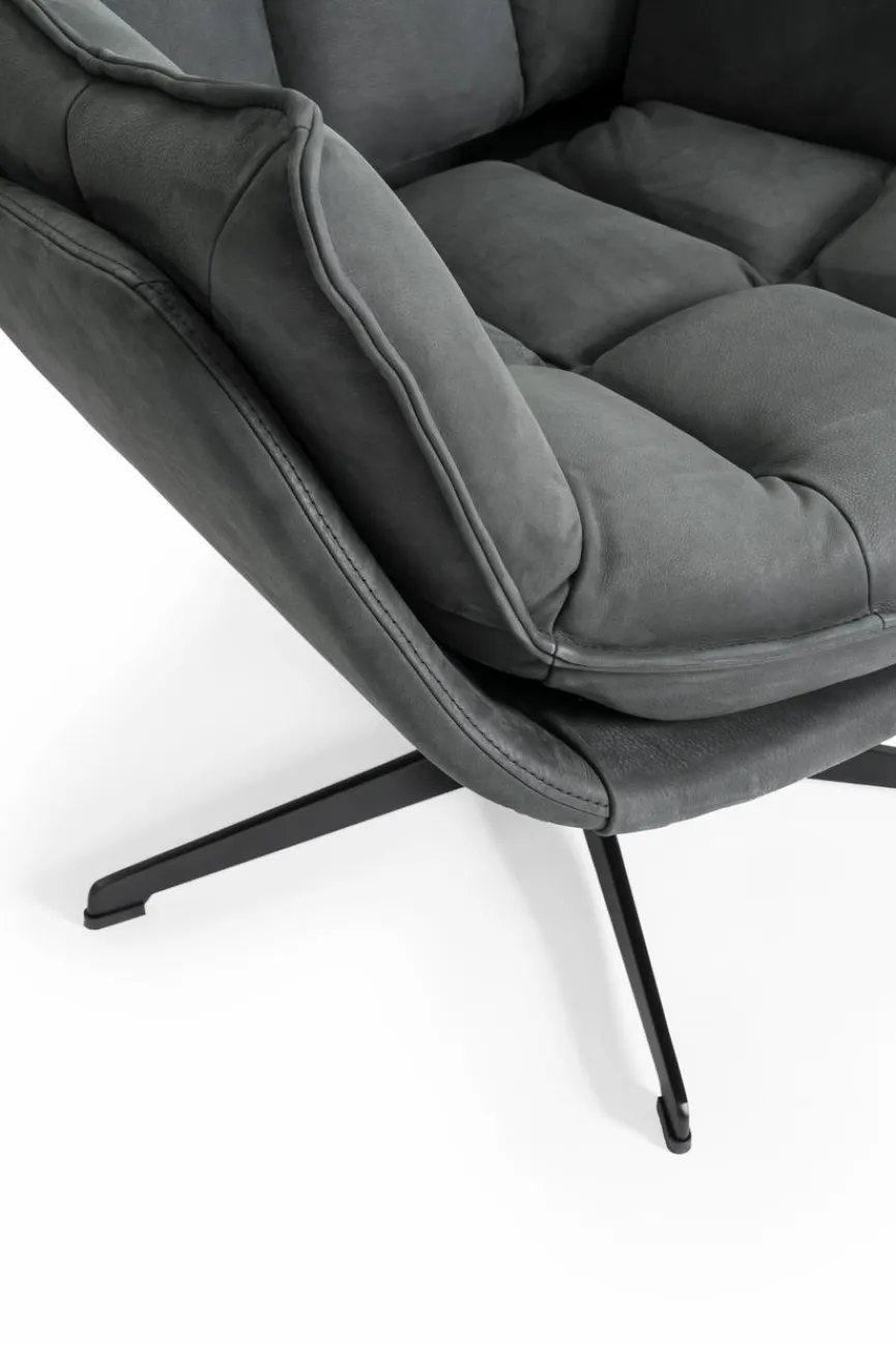 - Bezug aus Leder (Eagle) in black (M2100), Sternfuß (B) aus Metall in schwarz